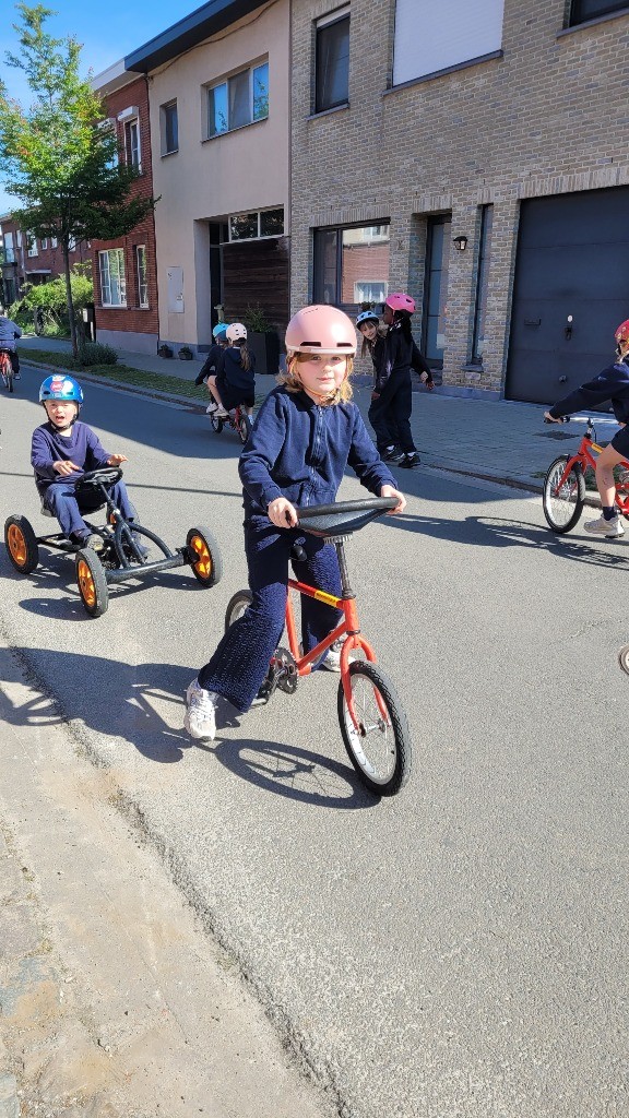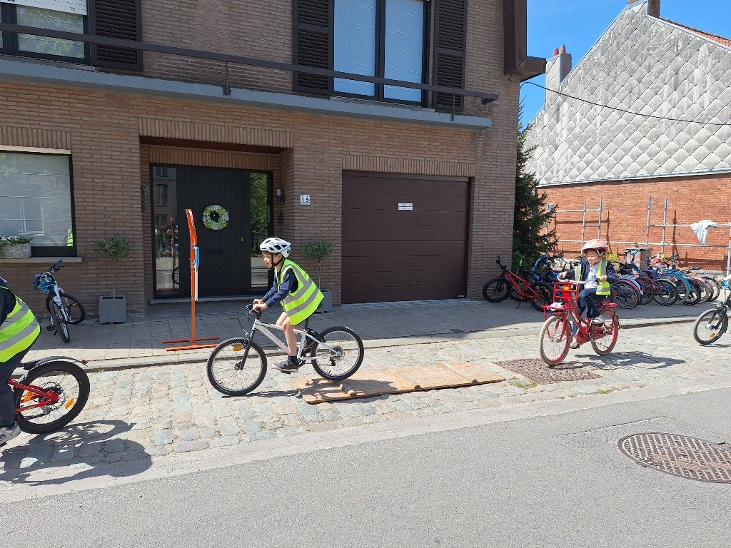 Onder een stralende zon namen vandaag alle leerlingen, van de kleuterklas tot en met het 6de leerjaar, deel aan onze verkeersactiedag. Op een speelse manier werkten ze aan de vaardigheden die nodig zijn om zich veilig en vlot met de fiets in het verkeer te verplaatsen. Met uitdagende fietsparcours, leuke behendigheidsoefeningen en een grondige fietscontrole viel er heel wat te beleven. Voor de kleuters was er bovendien een boeiend bezoek van de politie.