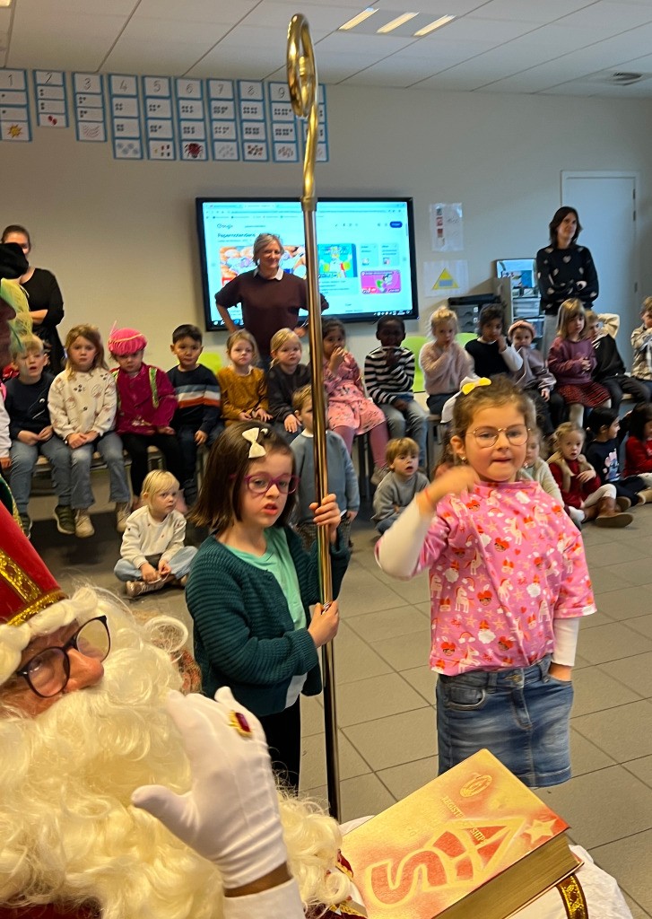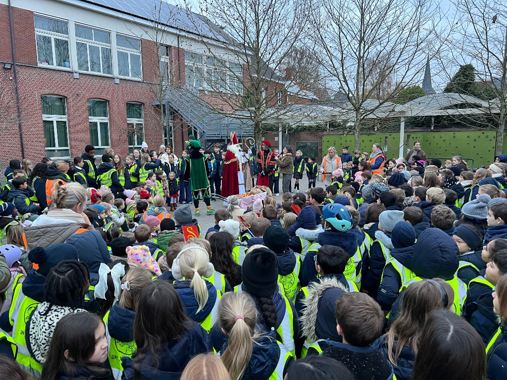 Sinterklaas en zijn hulppieten brachten dit jaar een bijzonder bezoek aan onze school. De Sint maakte zijn intrede op een Riksja, tot groot enthousiasme van alle kinderen die hem opwachtten. Hij nam ruim de tijd om langs te gaan bij de kleuters en de jongste leerlingen van de lagere school. In het grote boek stond het duidelijk: alle kinderen waren dit jaar braaf!