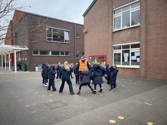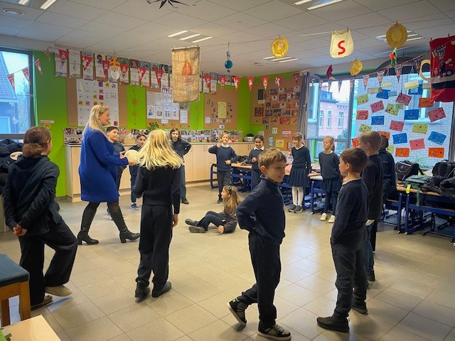 Op de Dag van de Sportclub kwamen alle leerlingen in het uniform van hun sportclub naar school. Zo zetten we samen verschillende sportverenigingen in de kijker. Op de speelplaats dansten we met z’n allen op een vrolijk nummer. Daarna namen alle klassen deel aan een sportieve looptocht rond de school. Het was een dag vol beweging, plezier en samenhorigheid! We moedigen iedereen aan om lid te worden van een sportclub: sporten maakt je fitter, gezonder en gelukkiger. Meester Marc verraste ons met een prachtige schoolvlag, waarin de ringen van de Olympische Spelen verwerkt zijn. Wat een sportieve sfeer!