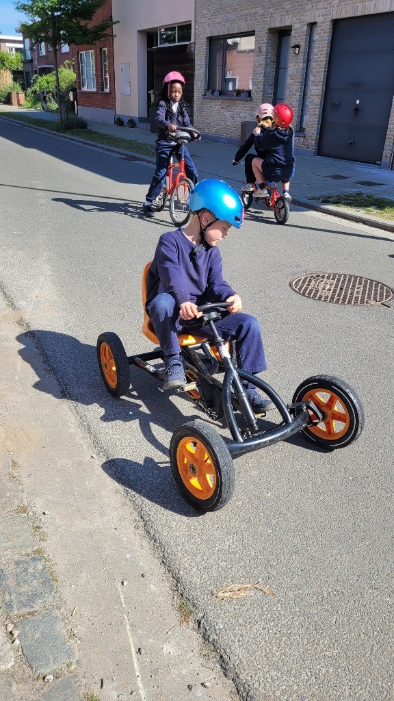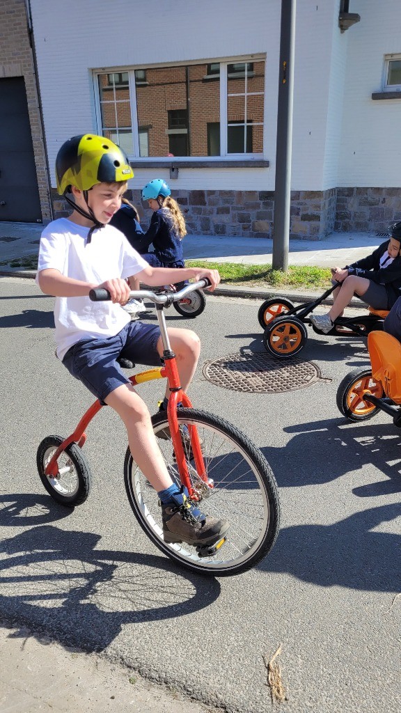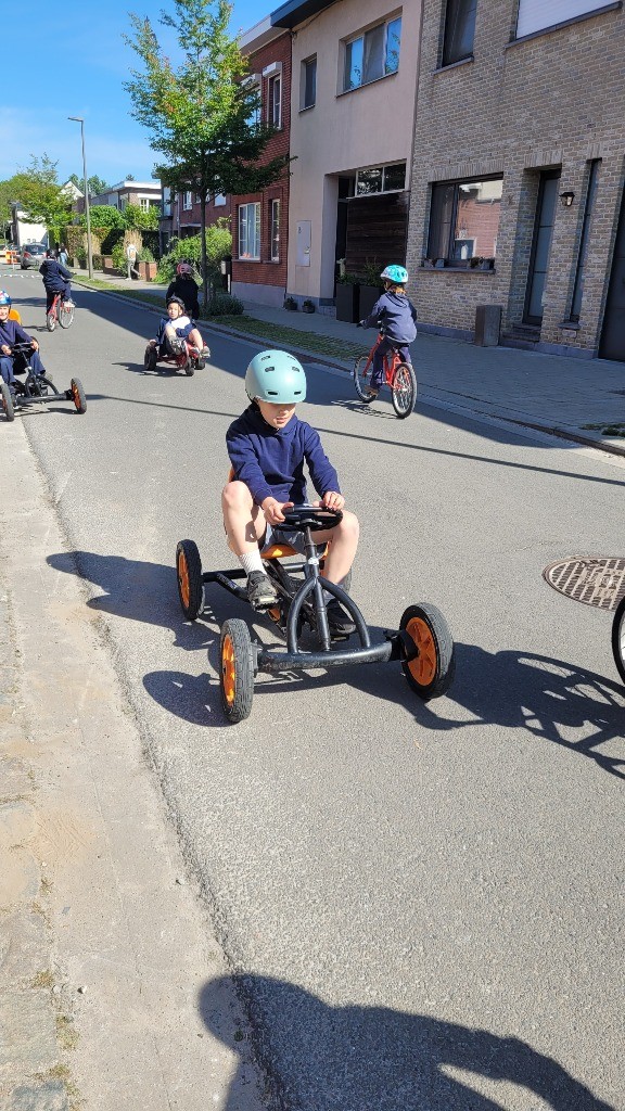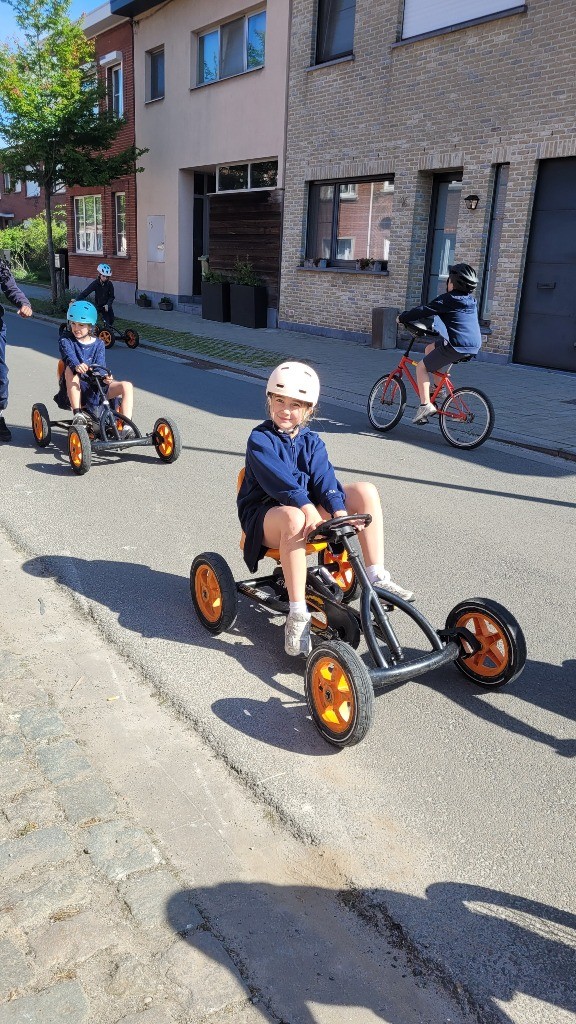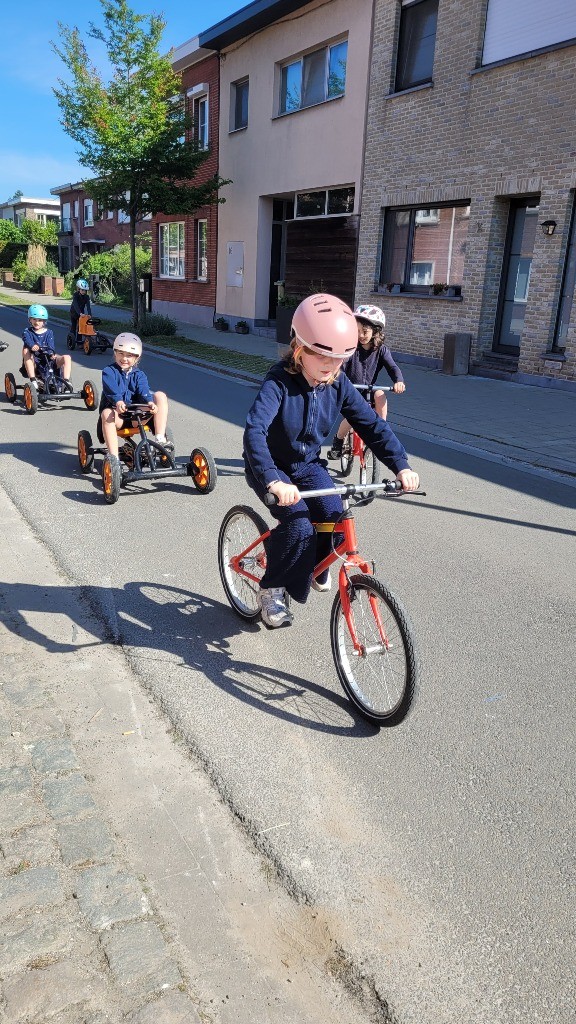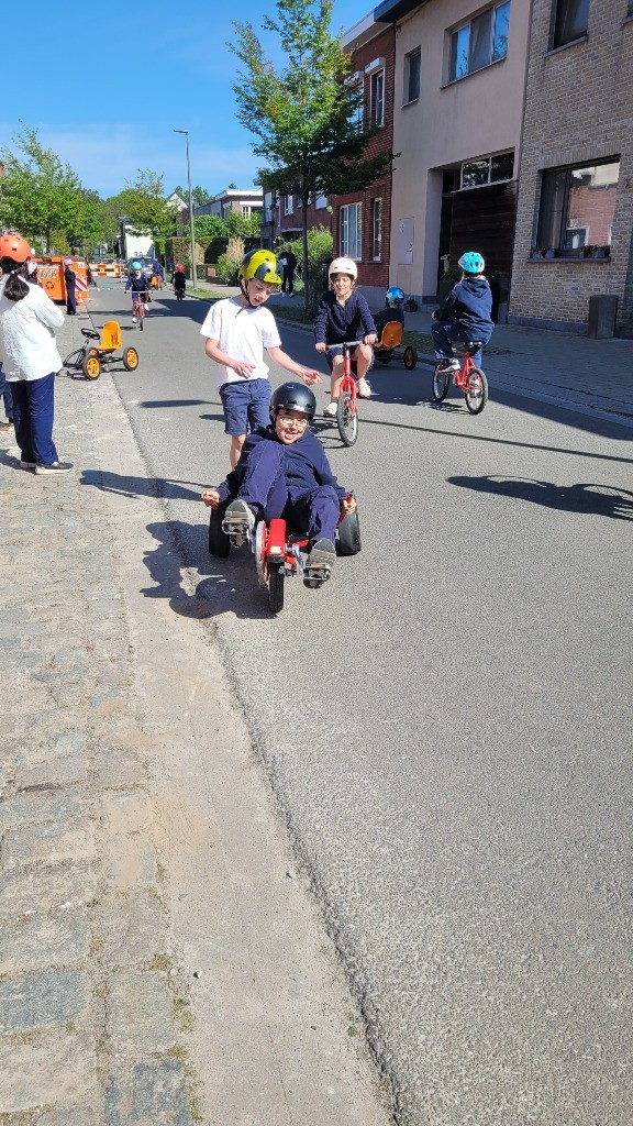 Onder een stralende zon namen vandaag alle leerlingen, van de kleuterklas tot en met het 6de leerjaar, deel aan onze verkeersactiedag. Op een speelse manier werkten ze aan de vaardigheden die nodig zijn om zich veilig en vlot met de fiets in het verkeer te verplaatsen. Met uitdagende fietsparcours, leuke behendigheidsoefeningen en een grondige fietscontrole viel er heel wat te beleven. Voor de kleuters was er bovendien een boeiend bezoek van de politie.