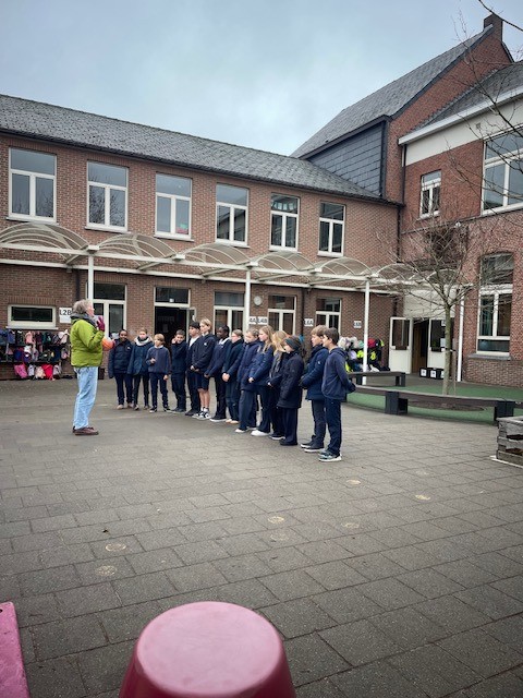 Op de Dag van de Sportclub kwamen alle leerlingen in het uniform van hun sportclub naar school. Zo zetten we samen verschillende sportverenigingen in de kijker. Op de speelplaats dansten we met z’n allen op een vrolijk nummer. Daarna namen alle klassen deel aan een sportieve looptocht rond de school. Het was een dag vol beweging, plezier en samenhorigheid! We moedigen iedereen aan om lid te worden van een sportclub: sporten maakt je fitter, gezonder en gelukkiger. Meester Marc verraste ons met een prachtige schoolvlag, waarin de ringen van de Olympische Spelen verwerkt zijn. Wat een sportieve sfeer!