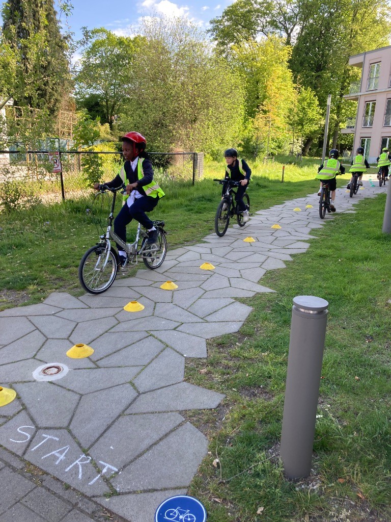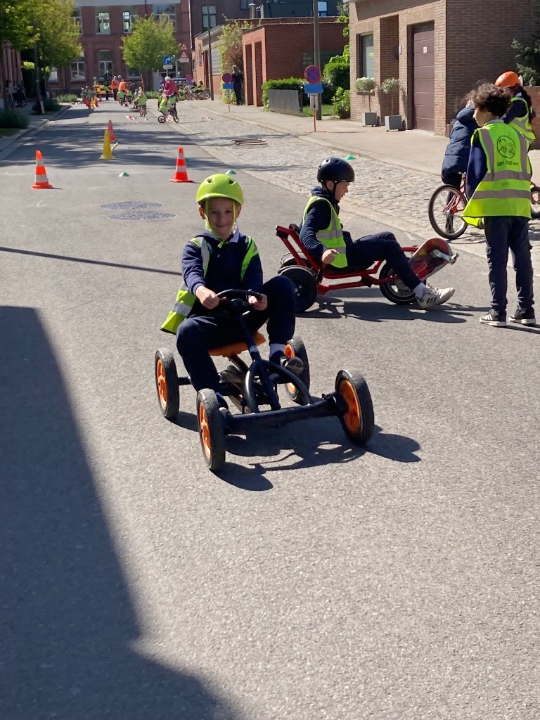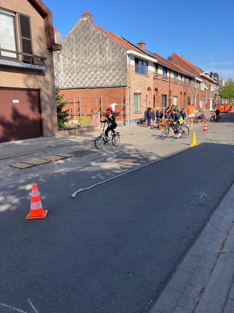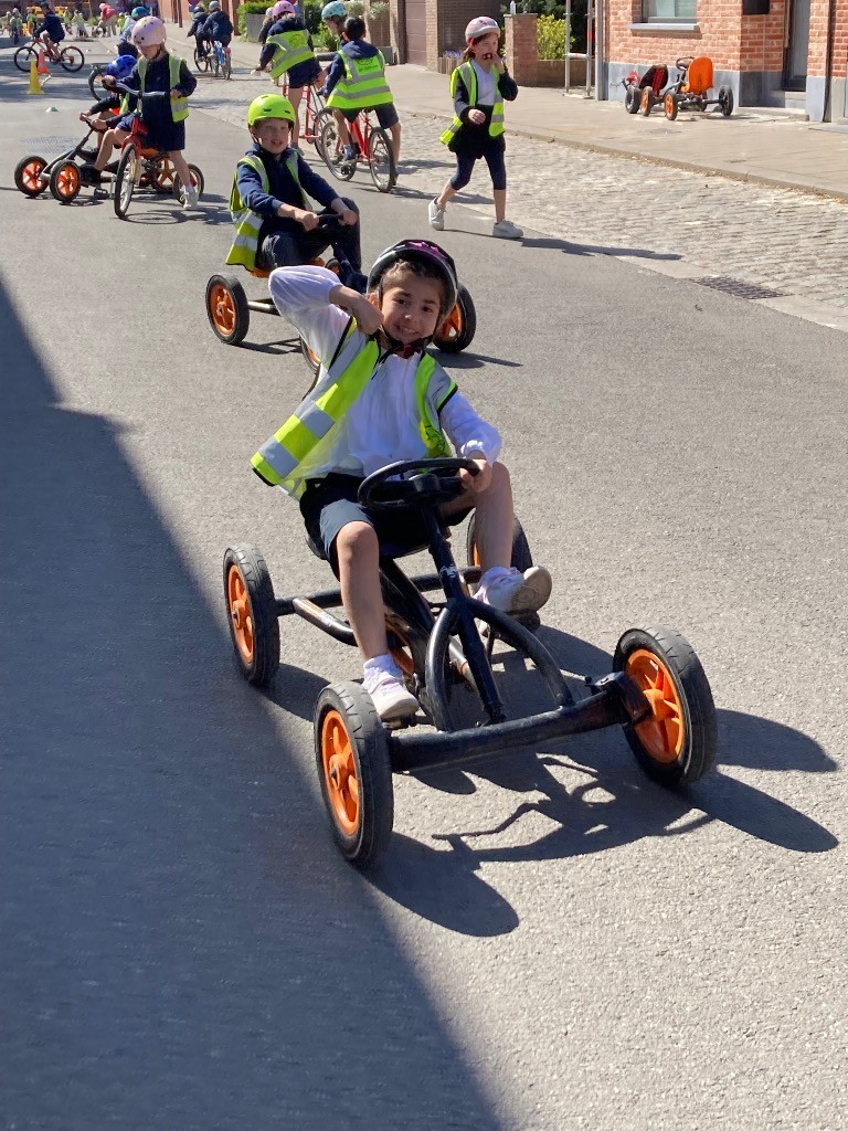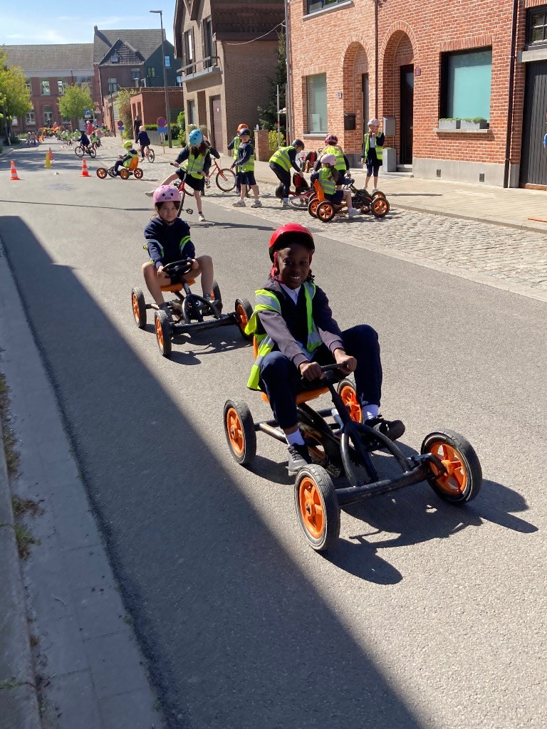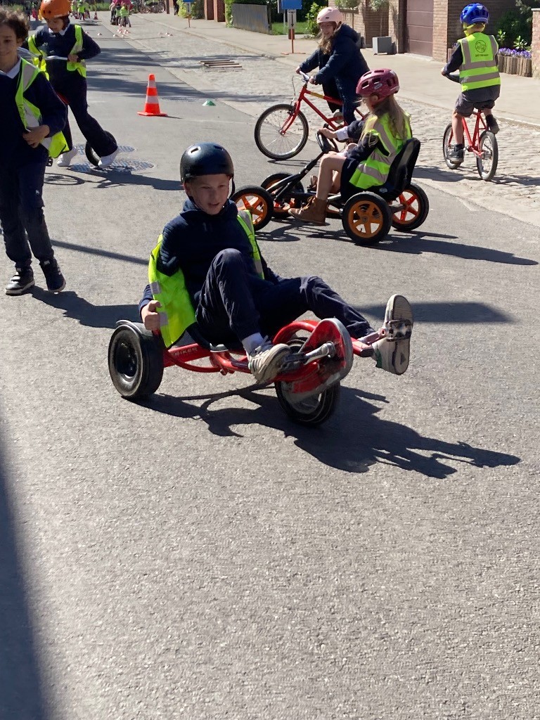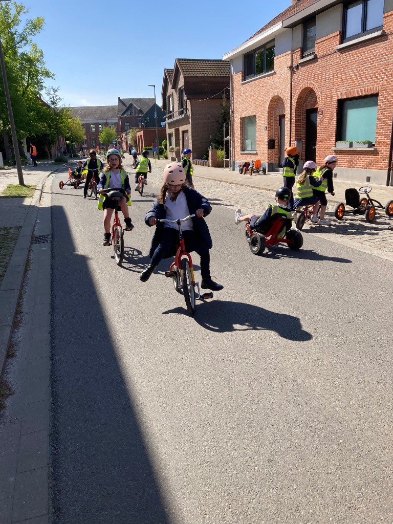 Onder een stralende zon namen vandaag alle leerlingen, van de kleuterklas tot en met het 6de leerjaar, deel aan onze verkeersactiedag. Op een speelse manier werkten ze aan de vaardigheden die nodig zijn om zich veilig en vlot met de fiets in het verkeer te verplaatsen. Met uitdagende fietsparcours, leuke behendigheidsoefeningen en een grondige fietscontrole viel er heel wat te beleven. Voor de kleuters was er bovendien een boeiend bezoek van de politie.