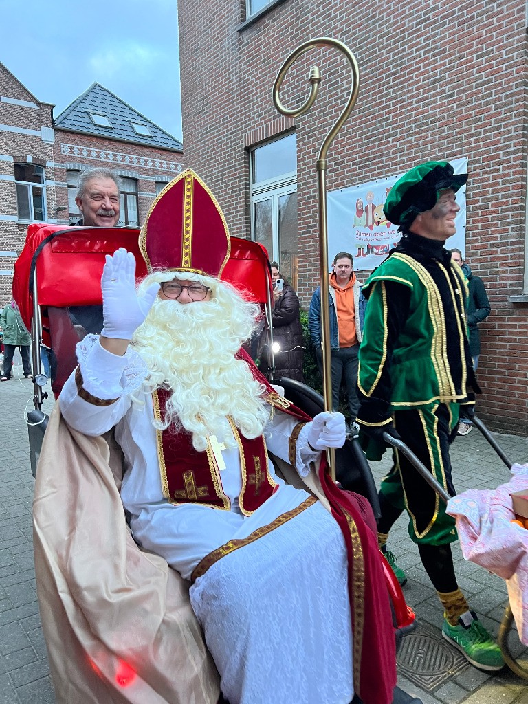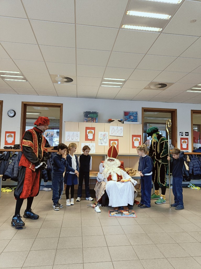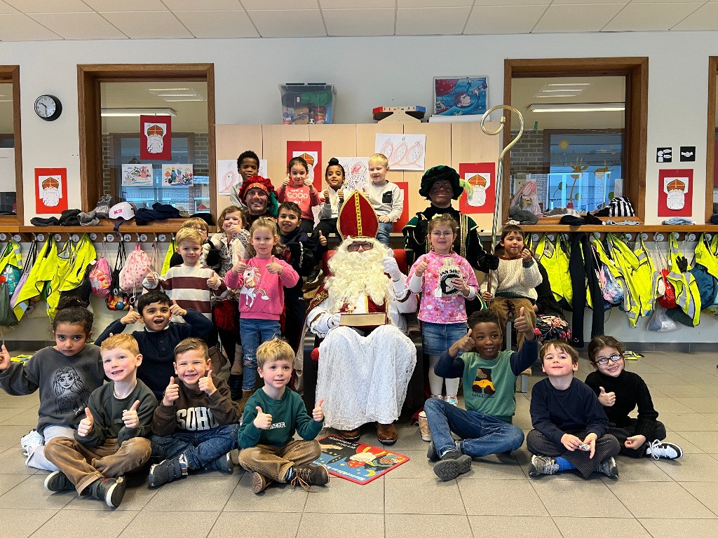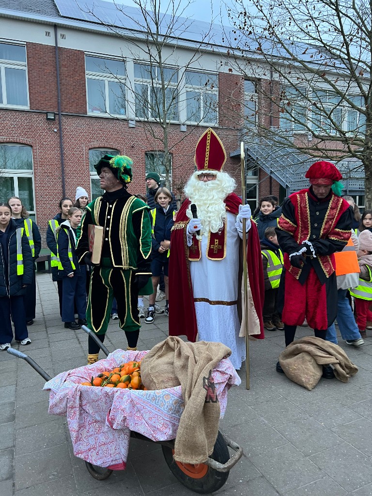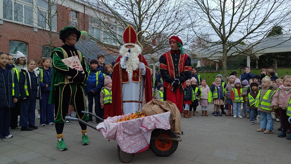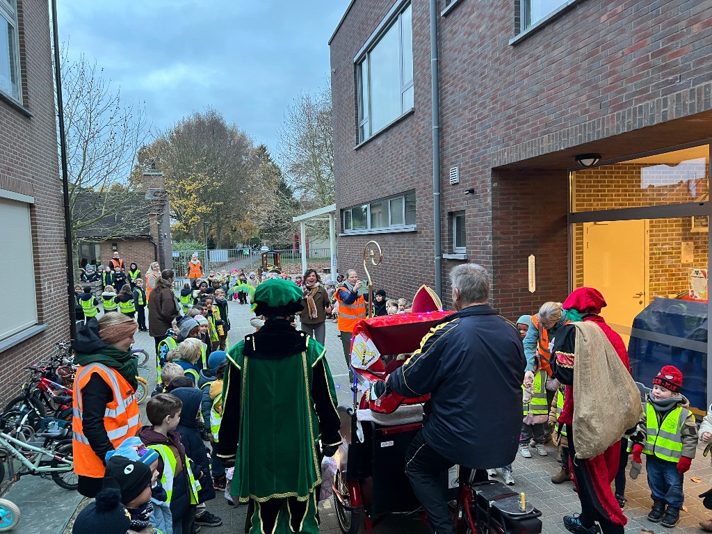 Sinterklaas en zijn hulppieten brachten dit jaar een bijzonder bezoek aan onze school. De Sint maakte zijn intrede op een Riksja, tot groot enthousiasme van alle kinderen die hem opwachtten. Hij nam ruim de tijd om langs te gaan bij de kleuters en de jongste leerlingen van de lagere school. In het grote boek stond het duidelijk: alle kinderen waren dit jaar braaf!